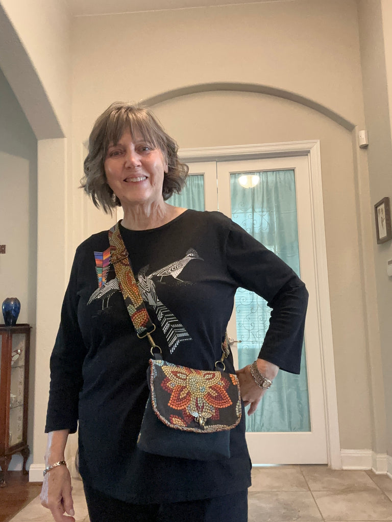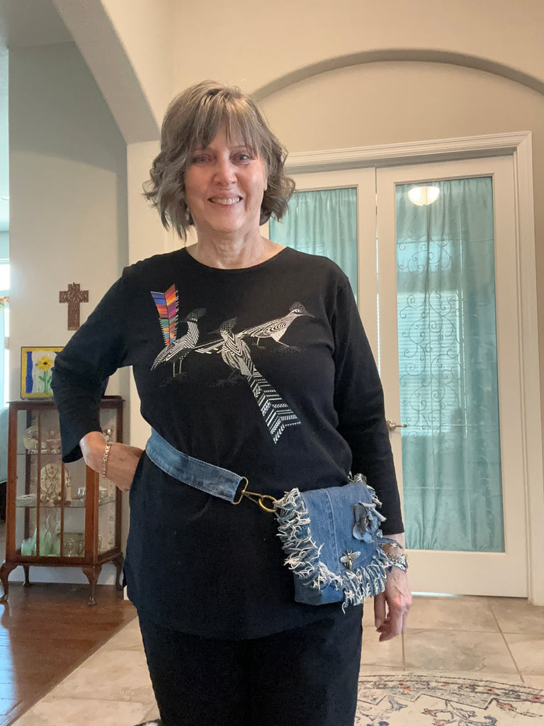This small bag can be a cross body, shoulder OR at your waist like a fanny pack. If you like hands free this is the bag for you!  Large enough to carry your essentials but small and light weight.  Make it from interesting fabric OR old jeans utilizing belt loops, pockets and waistband.  Carry it in a larger bag the way it is if you need to take more.  Take the little bag out when you only need your essentials.  VERY simple to make.     Size 9" wide X 7" high 2" Deep